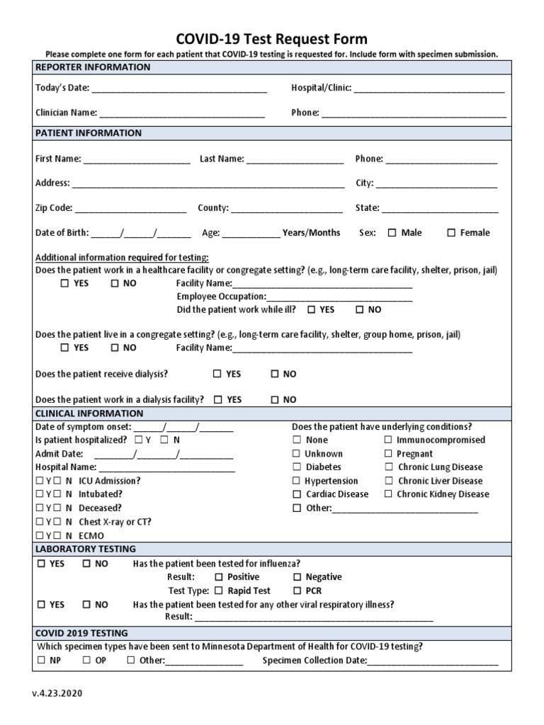 Covidtestform Pdf Chronic Condition Respiratory Diseases